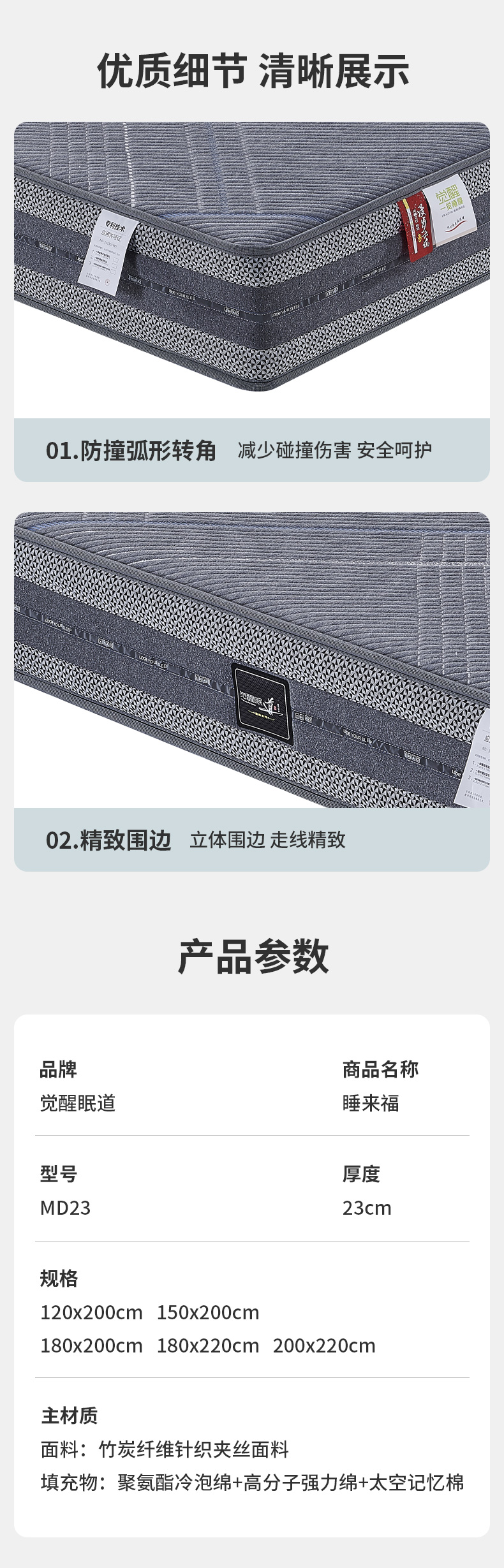 MD23睡来福 厚度:23cm 睡感: 硬85% 指导价:5999.00元