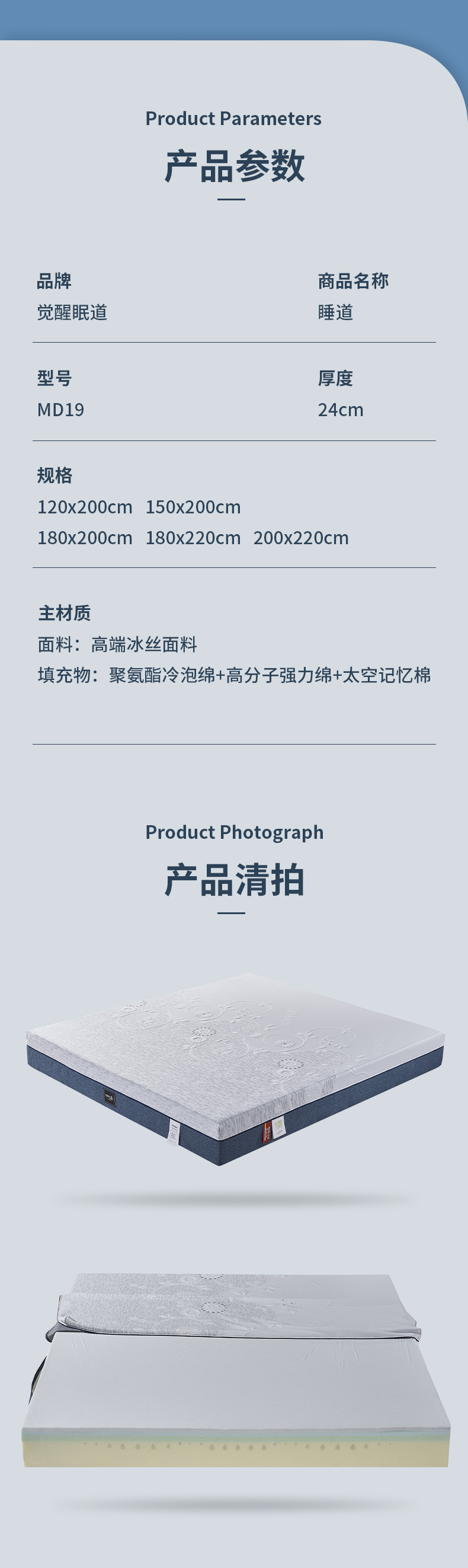 MD19睡道 厚度:24cm 睡感:偏软60% 特软50% 指导价:7539.00元
