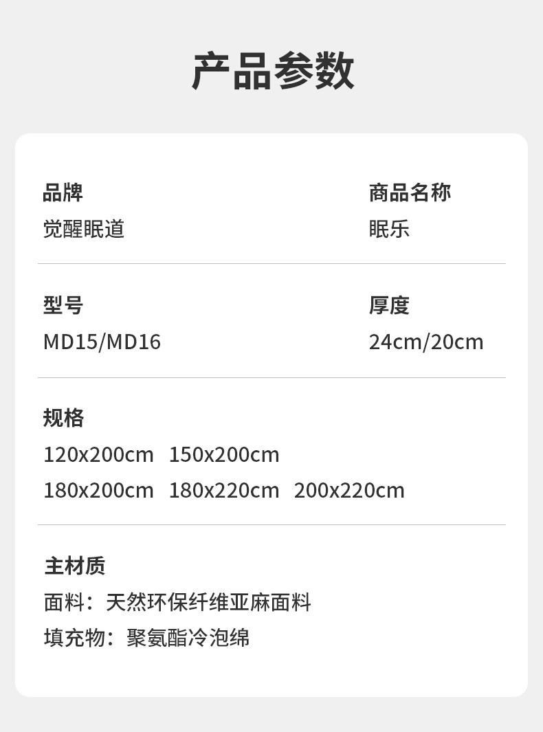 MD15眠乐 厚度:24cm 睡感:适中75% 指导价:5198.00元