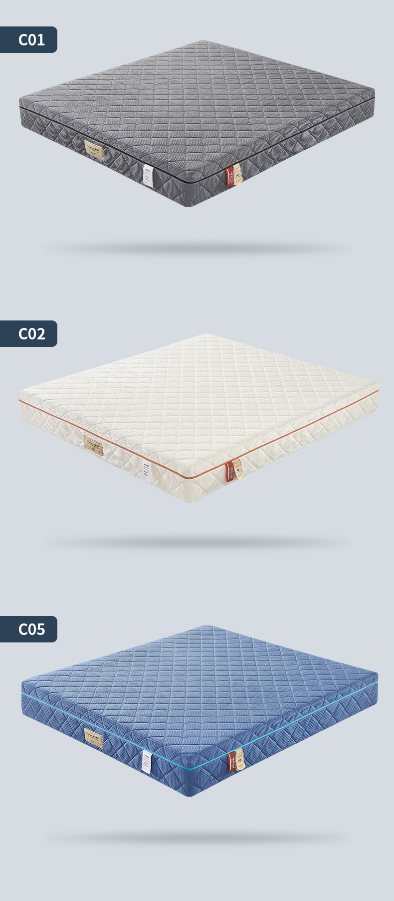 C01~C08云漫,力学保健型,睡感自适应可调节,厚度23~25cm,采用华芙格纯棉间绵可拆洗内外套式,官网指导价:19888元