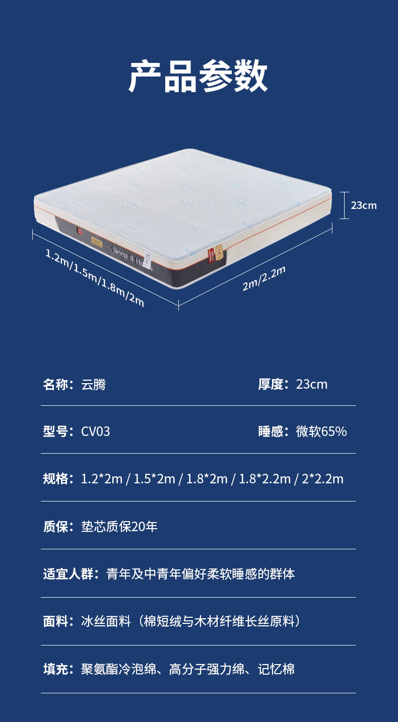 CV03云腾 厚度23cm 睡感:微软65% 指导价:5180.00