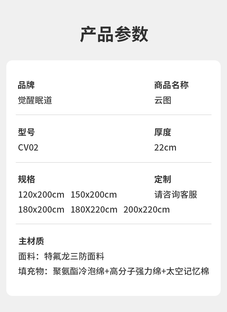 CV01云际 厚度22cm 睡感:微硬80% 指导价:3730.00