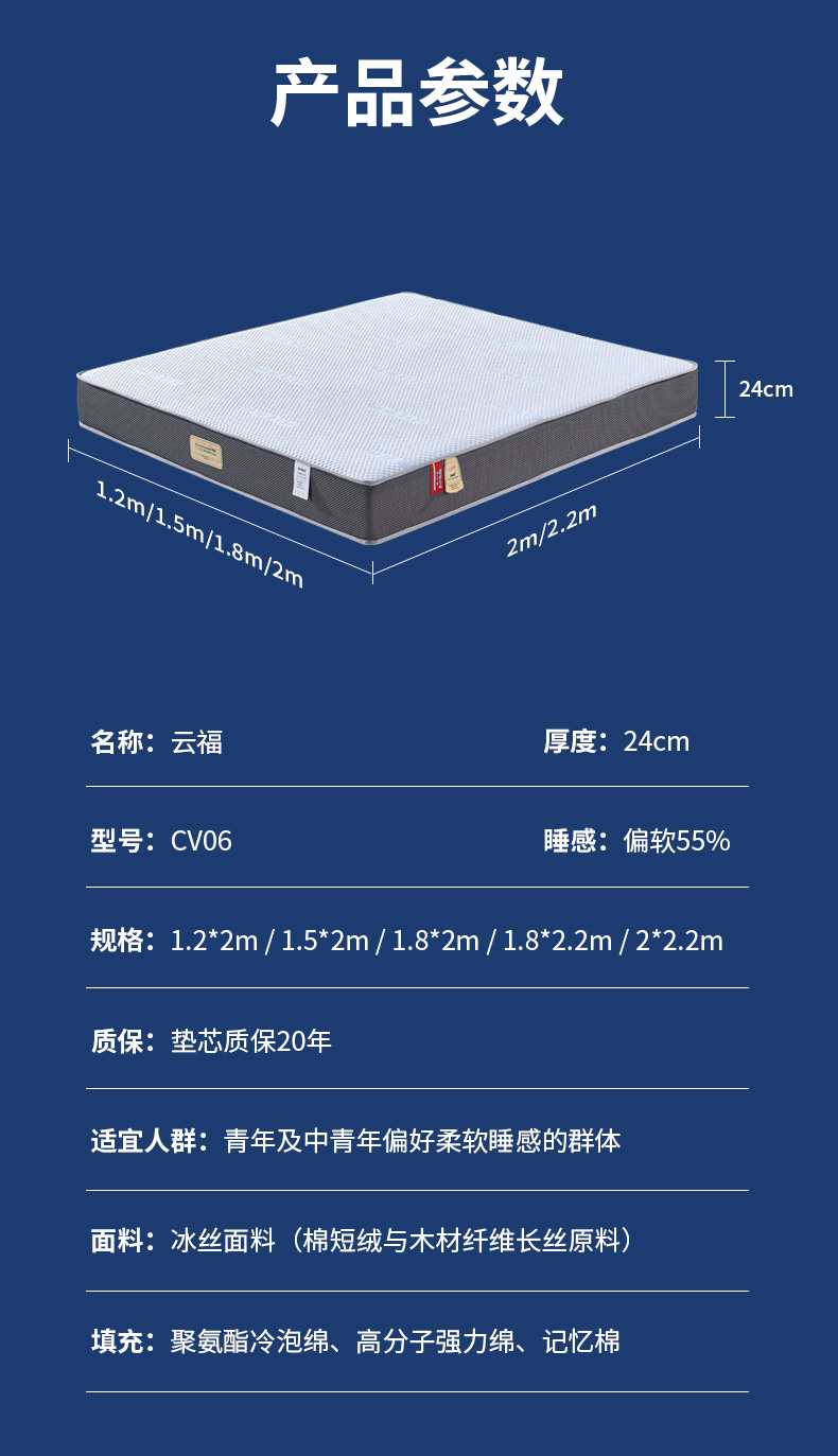 CV06云福 厚度24cm 睡感:偏软55% 指导价:6680.00