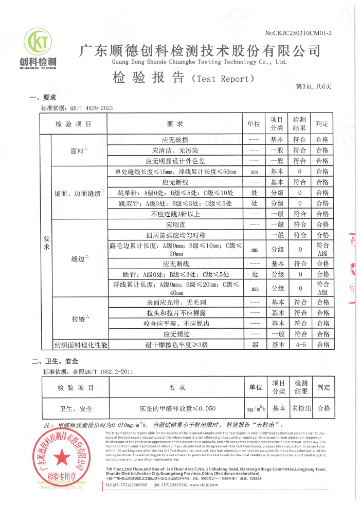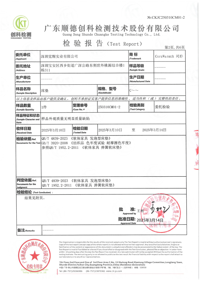 阔卧床垫2023质检报告